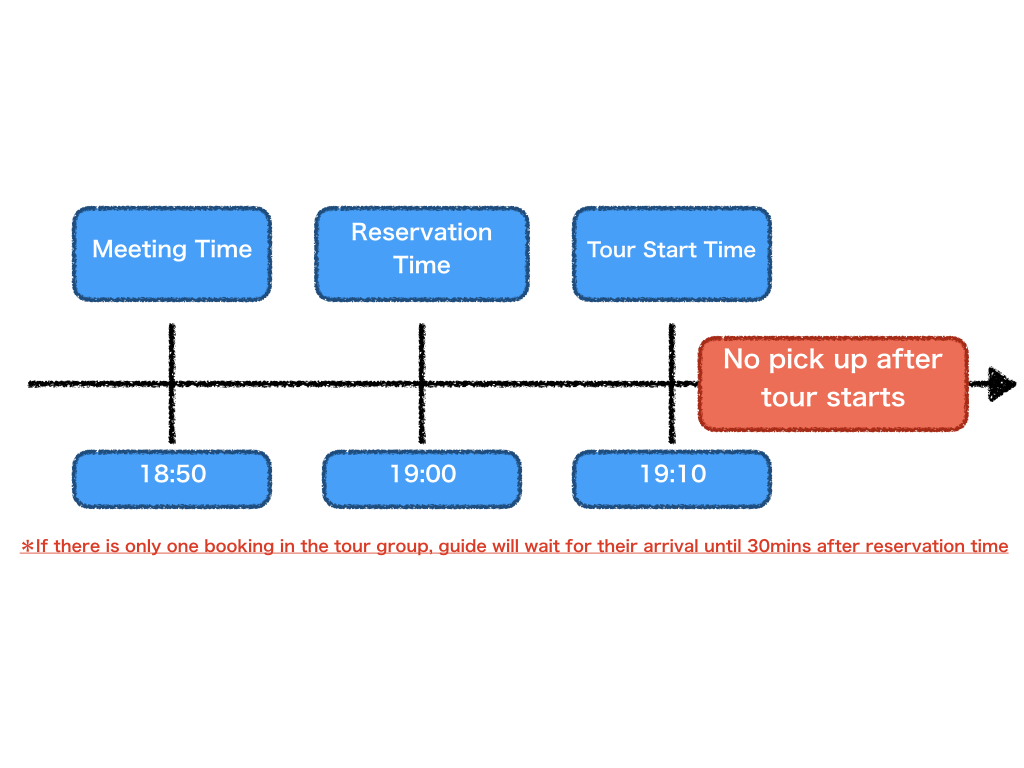 It is our understanding that disturbing the guide with constant contacts/messages to pick up late guests during the tour would not be ideal for both the guide and the guests. For this reason, we request our customers to arrive on time and cannot accept to join after tour starts.