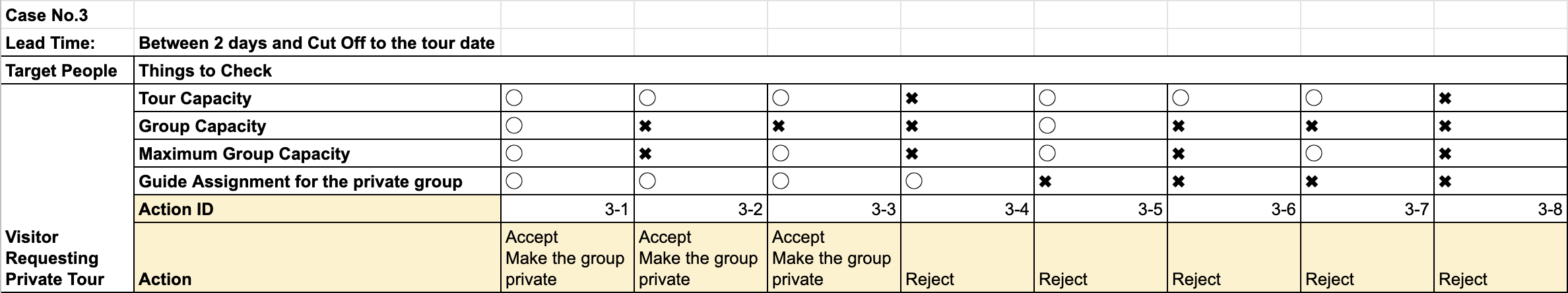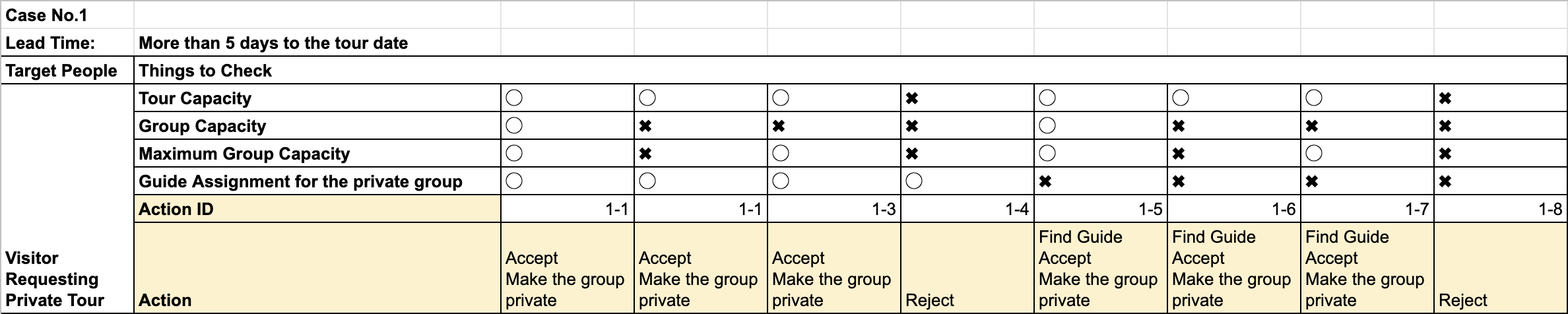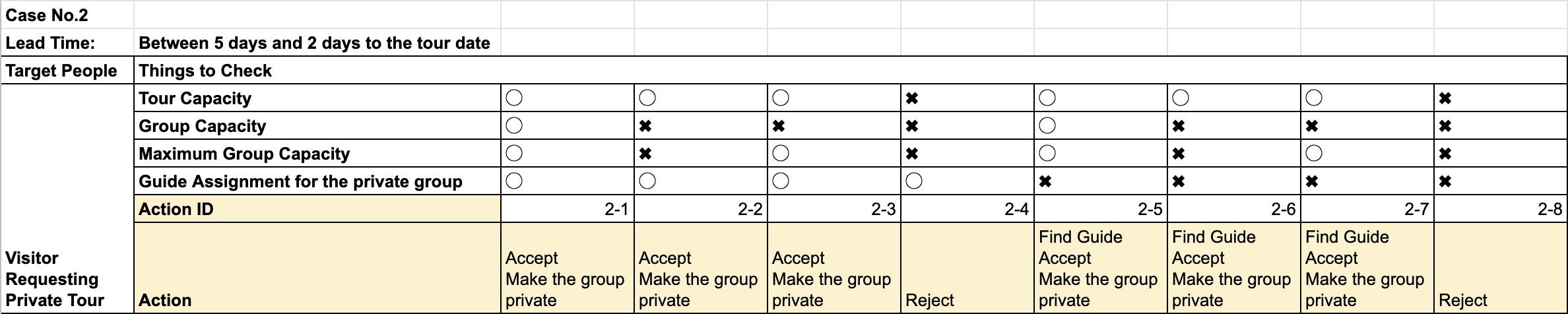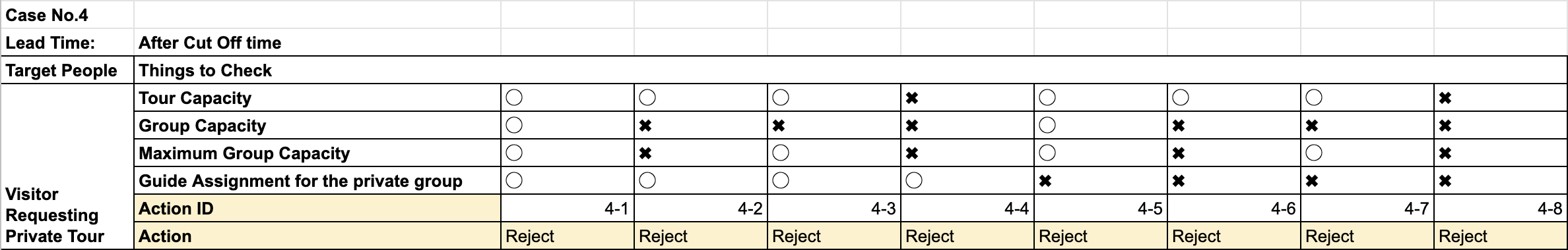 - Case 5: Inquiry about the visitor group with more than 8 people
