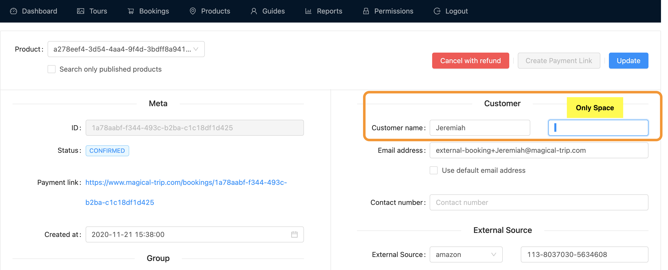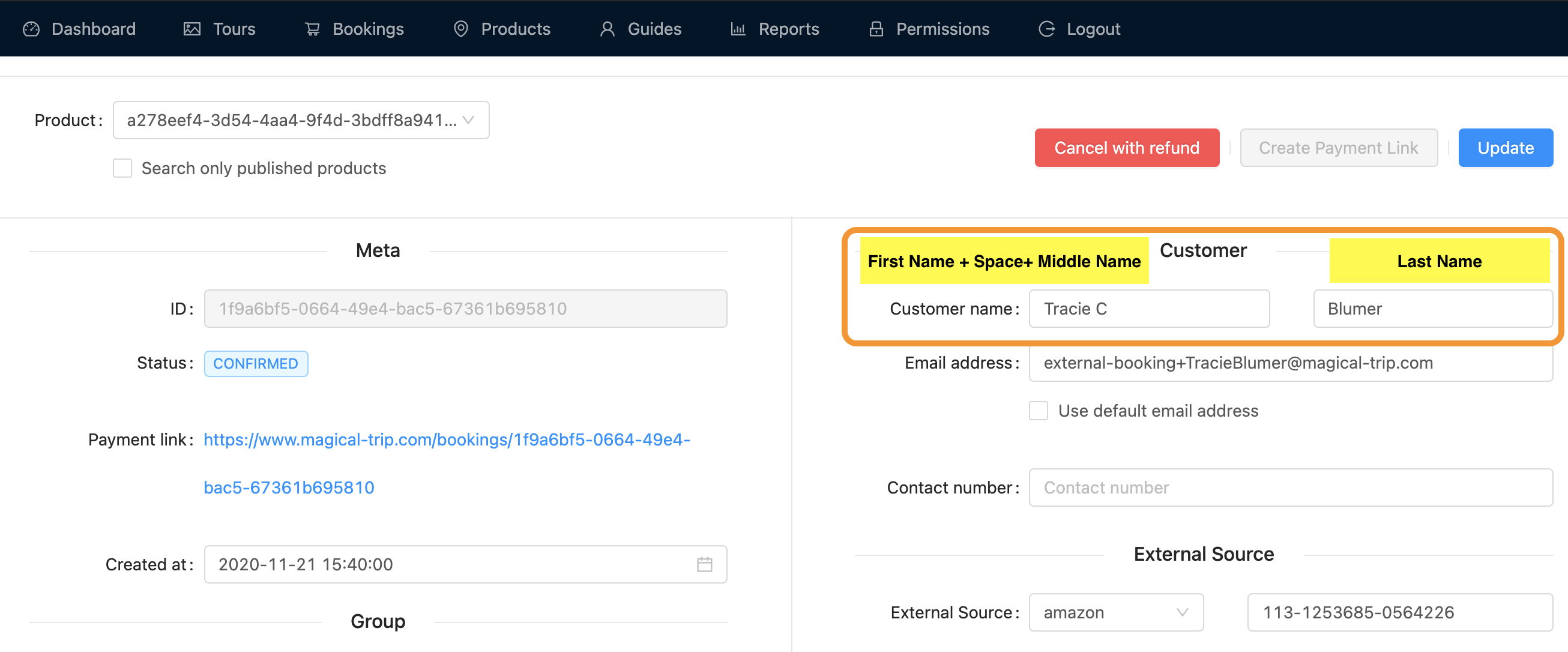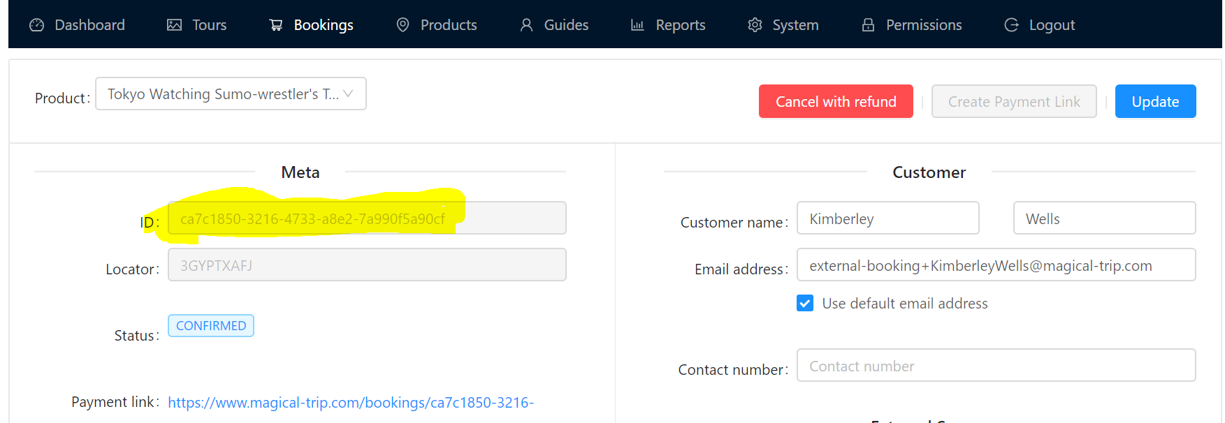 - MagicalTrip Confirmation ID (Copy the ID you see after adding a booking, shown right below "Meta")