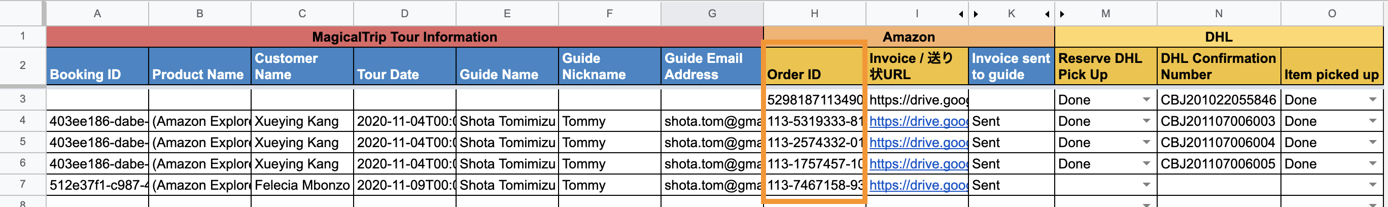 4. Put Order ID to Amazon Tour Operation Management sheet