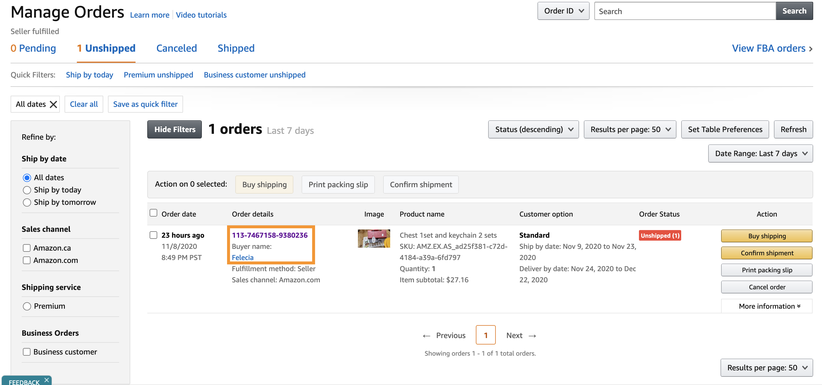 • 4-2: Paste the Order ID to the column H (Order ID) in Amazon Tour_Item Shipping