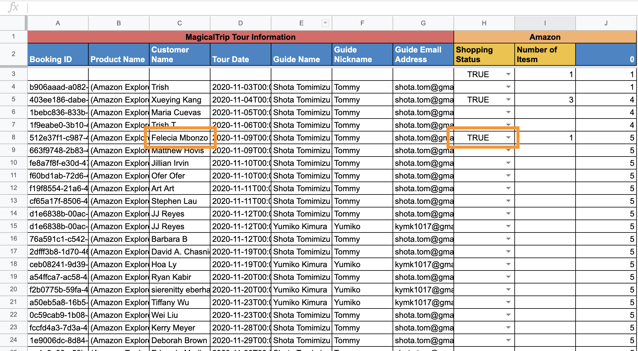 3. Find out the shopping is made from which tour group and change shopping status in Management sheet