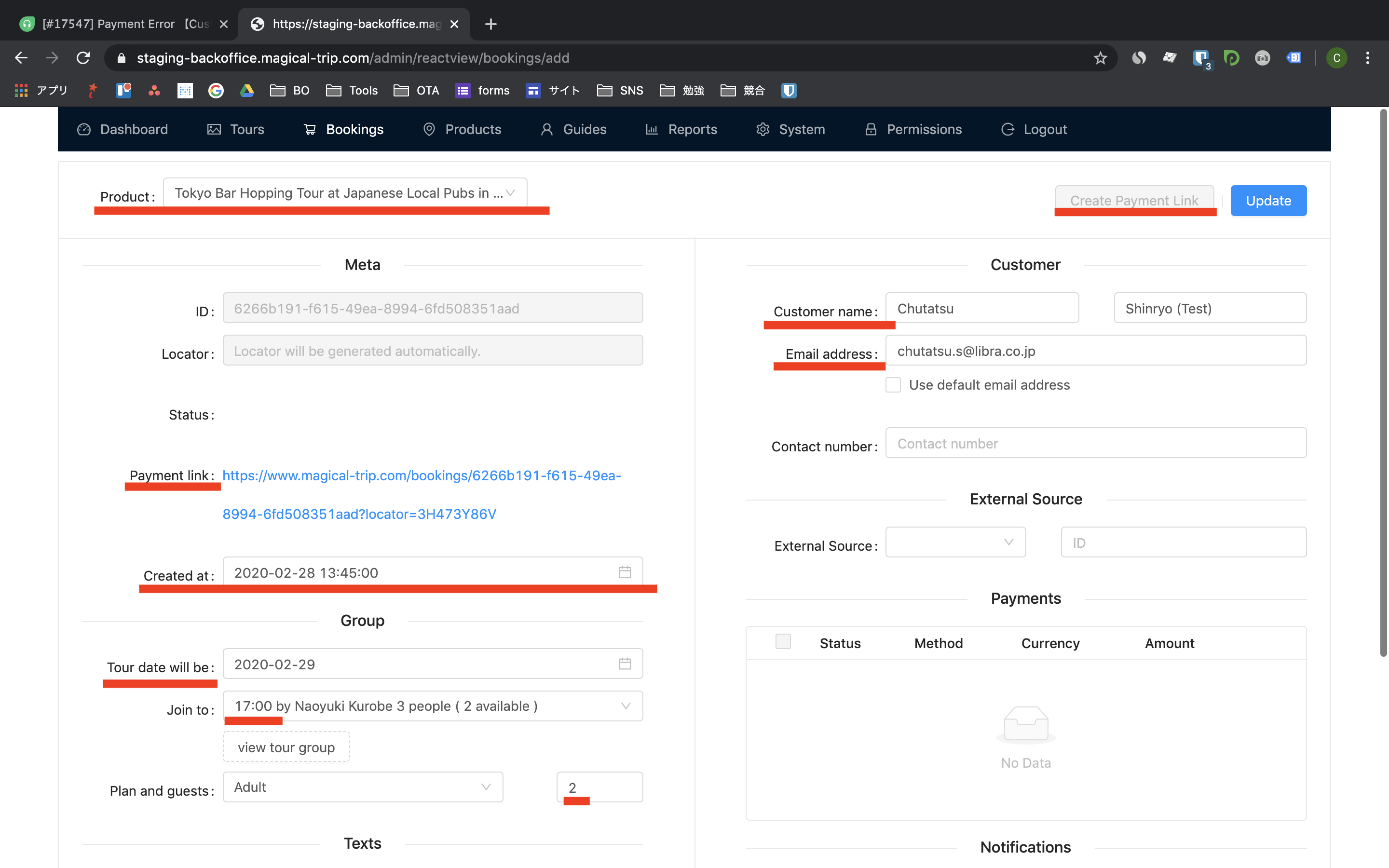 Hi,Thanks for contacting us.In order us to solve your situation, please kindly submit the payment error request from Customer Support Contact Form from the link below.https://www.magical-trip.com/contact-usBased on the information submitted from the form, we will send you over the payment link.Best regards,`Operator Name` from Magical Trip Support Team