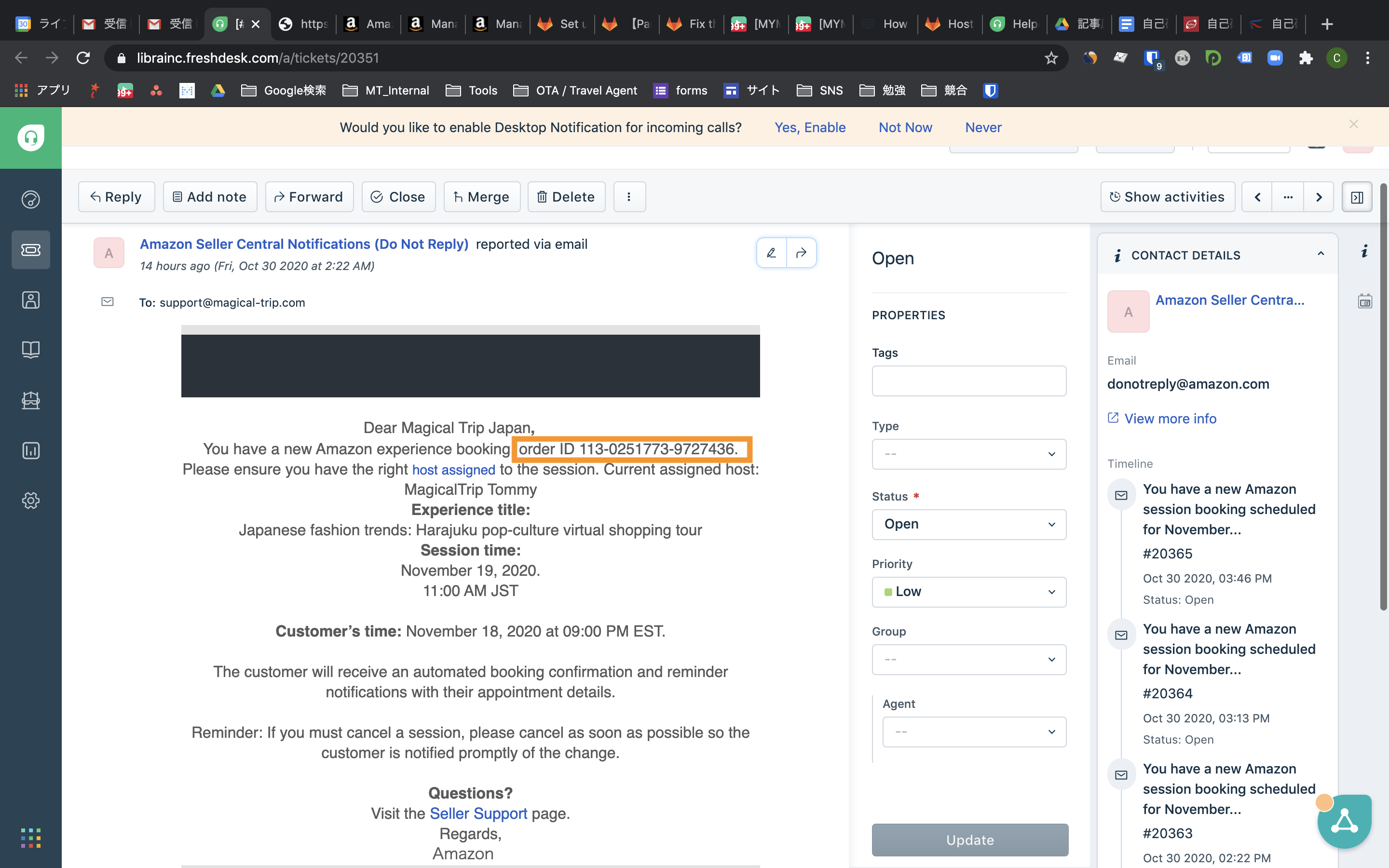 1. Details: 「You have a new Amazon session booking scheduled for 〇〇」